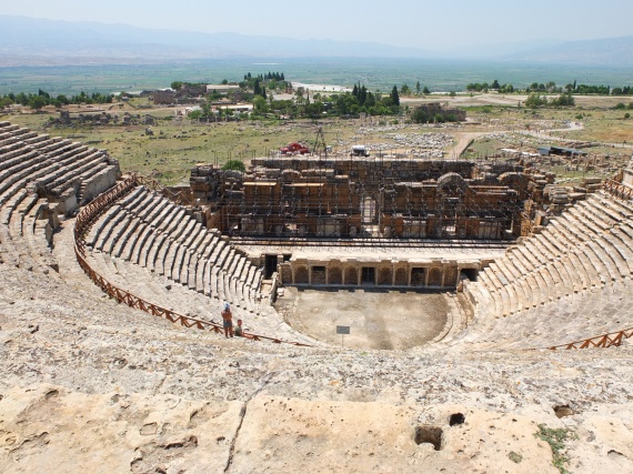 石灰の坂を上りきったところにヒエラポリスの遺跡があります。ツアーの時間の都合上、くまなく見学は出来ませんでしたが、1万人収容できる野外劇場などは見ごたえがありました。観光客はロシア人が多かったです、これはトルコはロシアから近くて、物価も安いし、リゾートぽいから?と思いました。