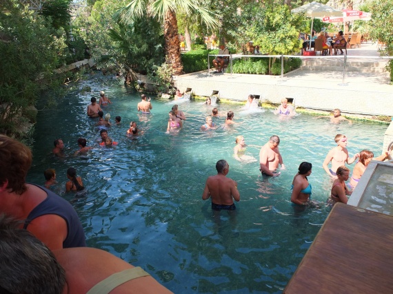 遺跡の中にある温泉プール。プールの底は遺跡で、ローマ時代の円柱が転がっています(表面はぬるぬる)。深いところは3m程あるそう。